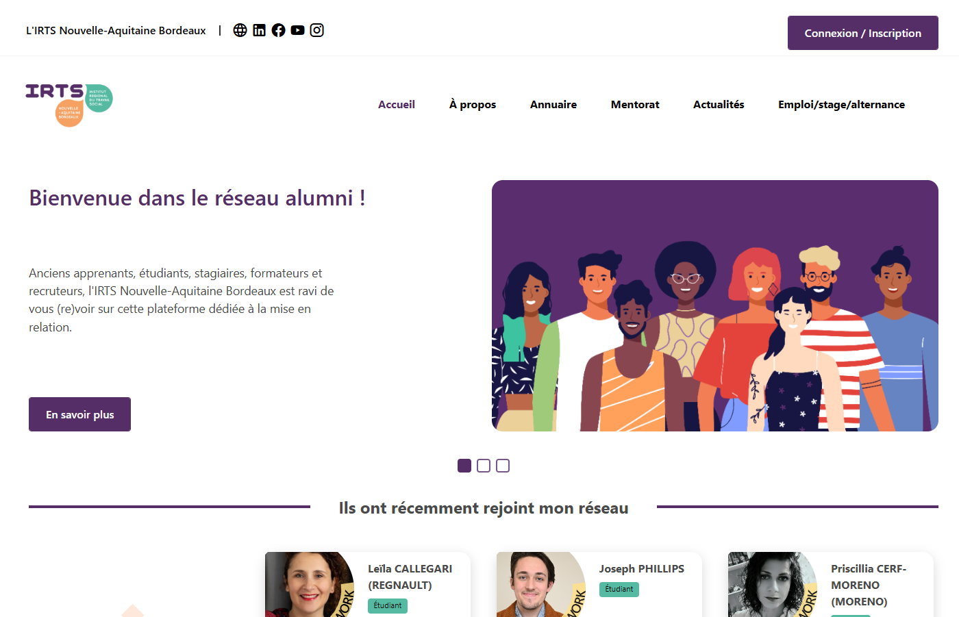 La plateforme dédiée alumni.irtsnouvelleaquitaine.fr est en ligne depuis 2024. Elle a été pensée pour favoriser les échanges, créer des opportunités professionnelles et valoriser les parcours de nos diplômés.